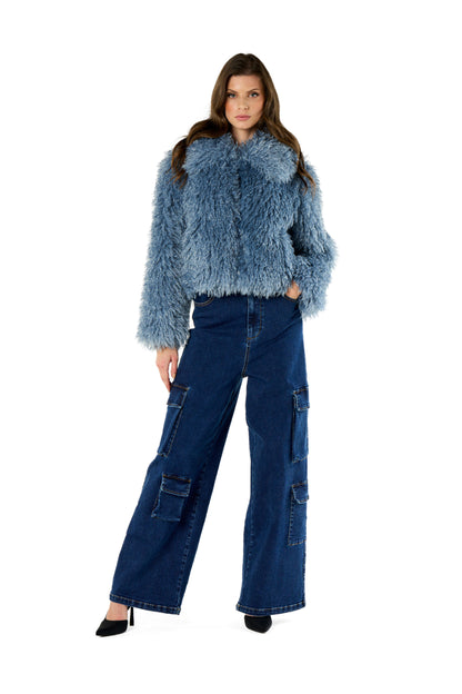Chaqueta de pelo corto sintético de Mongolia colección de NO SECRETS. La chaqueta de largo a la cintura tiene manga larga y un pequeño cuello redondo, es ideal para look informales. Colección de NO SECRETS en diheratelier.com