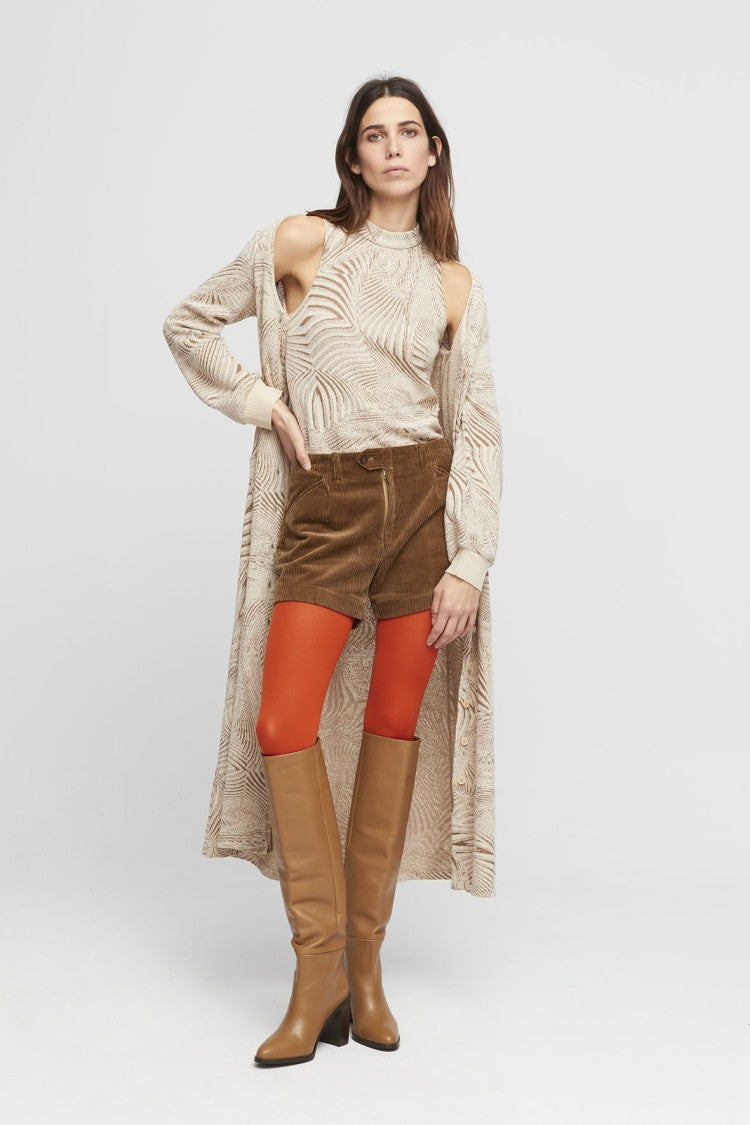 Jersey de Aldo Martins desmangado con cuello alto, sisas amplias, bajo recto y realizado en punto jacquard. Colección de ALDO MARTINS en diheratelier.com
