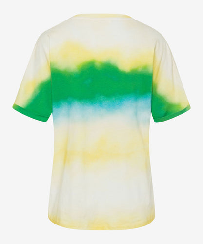 Camiseta Brax Feel Good multicolor de manga corta con vuelta. Escote redondo y ajuste holgado. Incluye aberturas laterales para un estilo relajado y cómodo. Ideal para un look moderno y desenfadado. Colección BRAX FEEL GOOD en diheratelier.com