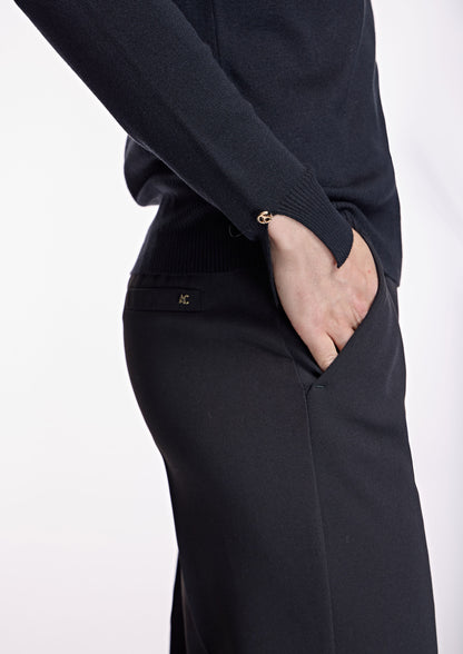 Jersey básico de punto ALBA CONDE en color negro, cuello vuelto, corte entellado, manga larga y bajo recto. Colección de ALBA CONDE en diheratelier.com