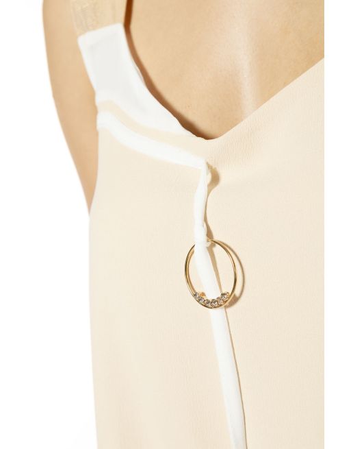 Camiseta de tirantes anchos y larga Elisa Cavaletti decorada con un fino patrón de strass en la parte delantera. La espalda acampanada en tejido arrugado se ciñe a la altura de los omóplatos, mientras que el bajo asimétrico con lados caídos aporta un look relajado, ideal para los días calurosos. Colección de ELISA CAVALETTI en diheratelier.com