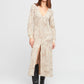 Chaqueta Aldo Martins de punto larga, abotonada en el frente con pequeños botones nacarados. Manga larga y bajo recto. Puede utilizarse como vestido con botas altas, dos prendas en una. Colección de ALDO MARTINS en diheratelier.com