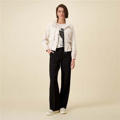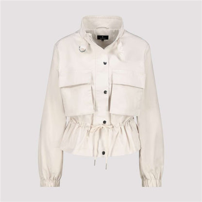 Chaqueta corta con cuello alto y bolsillos cargo con solapa en el delantero. El cuello se cierra con solapa y hebilla, corte holgado, se ciñe en cintura con cordón y mangas largas acabadas en puño con elástico. Colección de MONARI en diheratelier.com