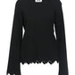 Jersey de No Secrets en punto ligero negro. Presenta manga larga acabada en forma de trompeta y rematada con strass en forma de picos, bajo acabado en picos y rematado del mismo modo. Cuello redondo. Tacto muy suave y agradable. Colección NO SECRETS en diheratelier.com