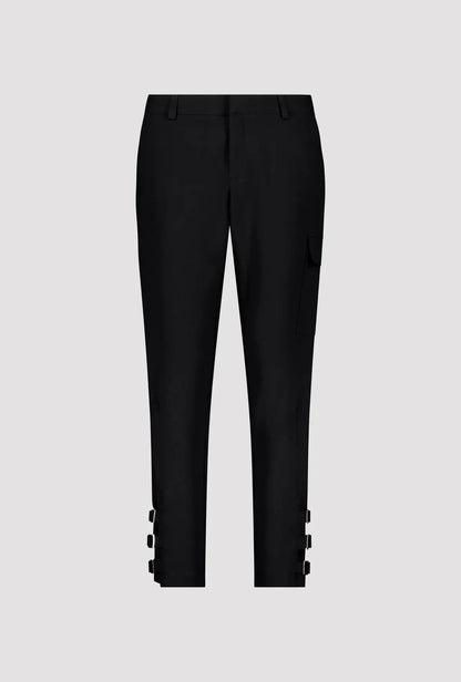 Pantalones cargo con hebillas laterales de la colección MONARI. Realizados en material elástico lo que le confiere un ajuste cómodo y regular. Los bolsillos traseros son falsos y el de la pierna es de parche y con solapa. Puedes encontrar la colección de MONARI en diheratelier.com