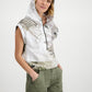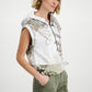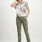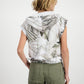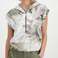 Sudadera Monari casual de manga corta con estampado integral de palmeras y escritura ornamentada. Detalles de estampado lacado en el delantero, capucha y cremallera hasta la mitad del delantero. Colección de MONARI en diheratelier.com