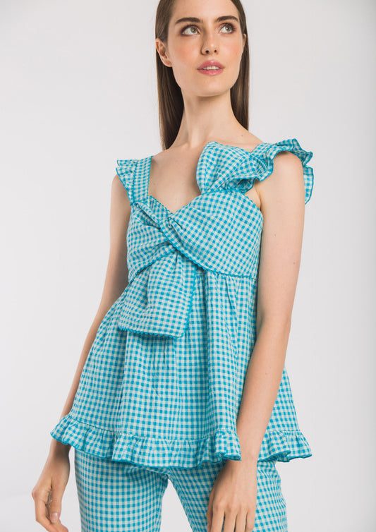 PromoçãoTop ALBA CONDE cuadro vichy azul