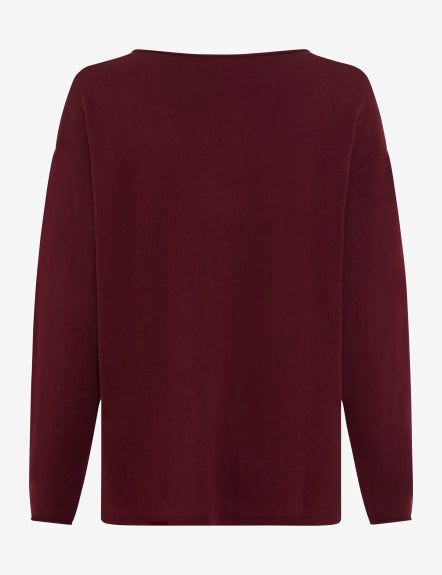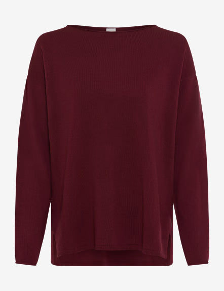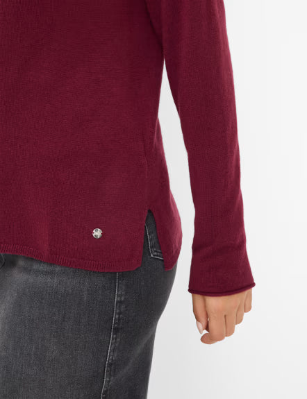 Jersey de pura lana virgen en color rubí de la firma BRAX FEEL GOOD. La prenda estilo LIZ es perfecta para el otoño, escote redondo, silueta relajada, bajo redondeado con aberturas laterales, manga larga y realizado en material de alta calidad -mezcla de merino y cachemira-. Colección de BRAX FEEL GOOD en diheratelier.com